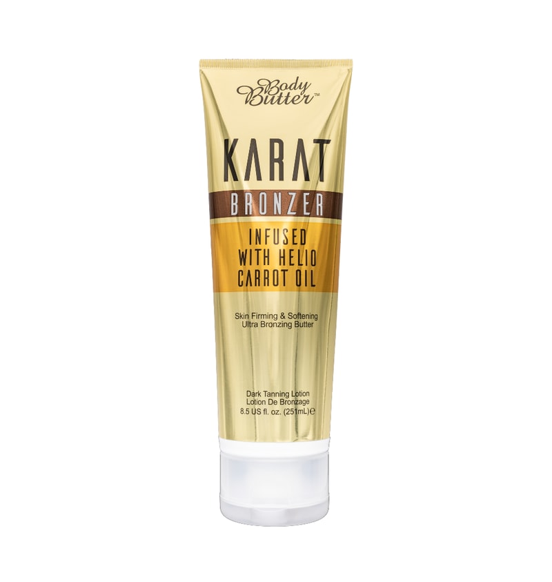 Karat Bronzer Lotion de la Body Butter este o cremă cu bronzant instant puternic (DHA) pentru o perioadă îndelungată și rezultate uimitoare. Formula combină agenți de culoare cu ingrediente anti-îmbătrânire. Baobab și Uleiul de Jojoba au proprietăți anti-inflamatoare și reduc ridurile. De asemenea, conține MelaTime™, care stimulează producția de melanină și ajută la prevenirea îmbătrânirii pielii.